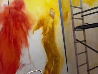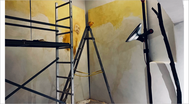 A partir de début mai 2026, pendant la Biennale d’art de Venise (en off), Rafaëlle Labourgade présentera au Palazzo Contarini Polignac Entre deux battements, un tableau monumental de 12 m de long sur 3 m de hauteur.